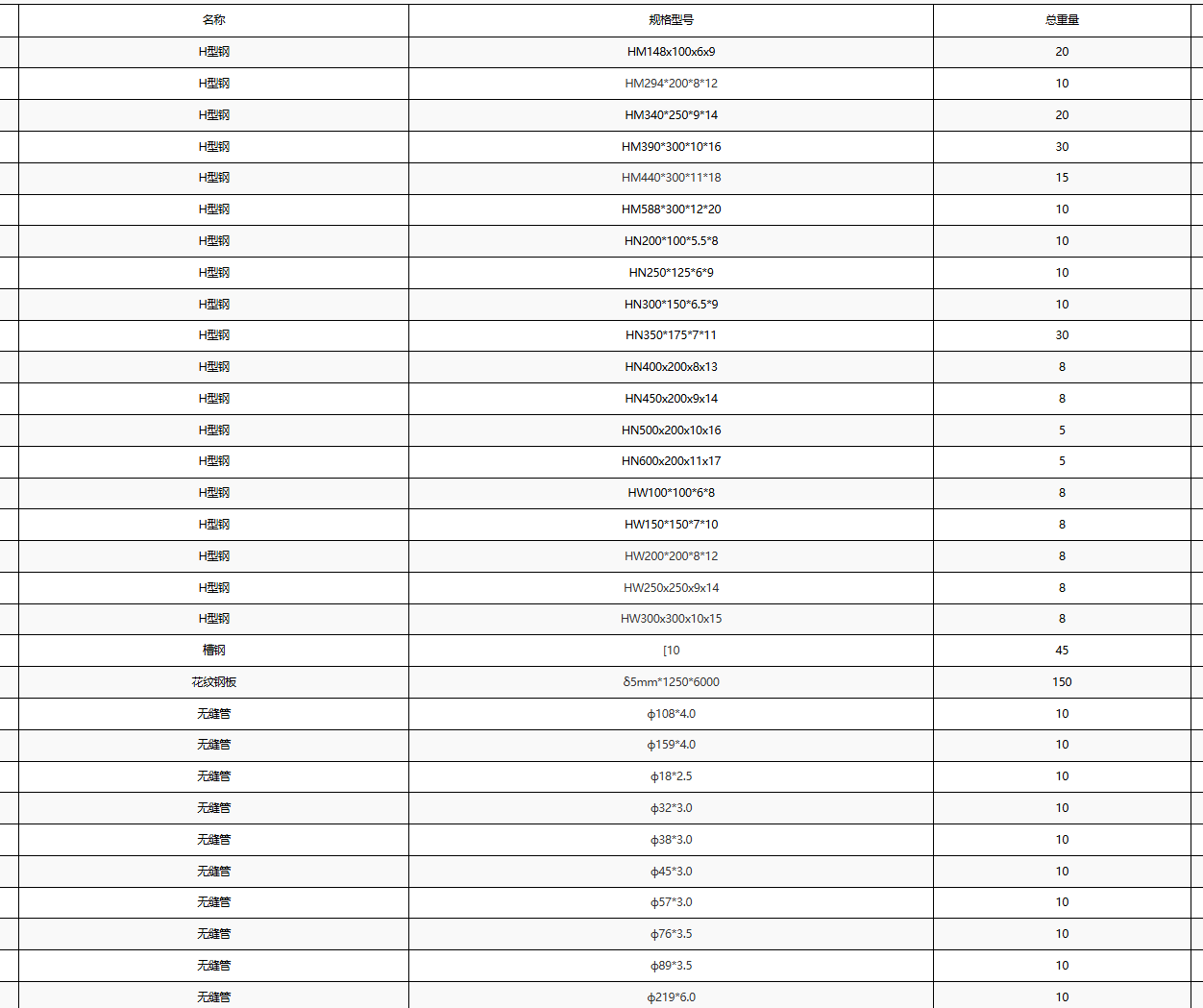 | 项目描述 | 浙江杭州纺织化学品技术改造项目采购钢材,主要包含H型钢,槽钢,花纹钢板和无缝管,具体规格及采购数量见清单,联系人:谢经理。 |