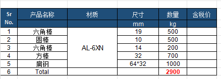 江苏泰州地区求购六角棒,材质AL-6XN型钢,具体品类,规格及采购量见采购清单,要求正规大厂的保证材质,价格合适可长期合作,请江苏就近有货厂家联系报价含税含运输