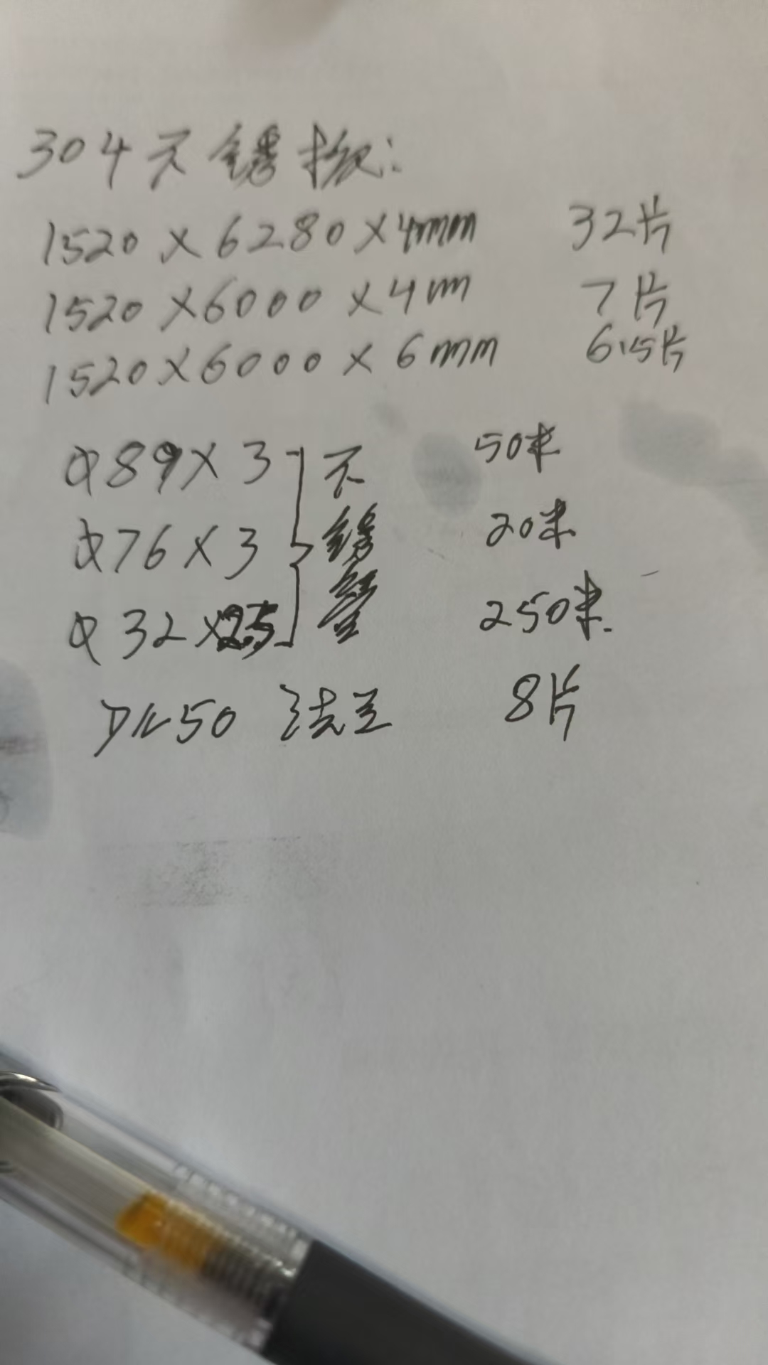 | 项目描述 | 广东汕头项目采购不锈钢材料,包含304不锈钢板,规格1520*6280*4MM,需要32张,1520*6000*4MM,需要7张,1520*6000*6MM,需要6张,不锈钢管89*3需要50米,76*3需要20米,32*2.5需要250米,DN50法兰需要8片,年后开工需要,有广东本地厂家可以联系本人报价。 |