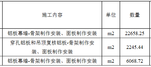 | 项目描述 | 浙江新能源汽车科创产业园一期铝板幕墙工程,劳务分包,主要负责铝板幕墙,穿孔铝板和吊顶复合铝板,骨架制作安装、面板制作安装 等内容,具体工程量参考清单,联系人:谢总。 |