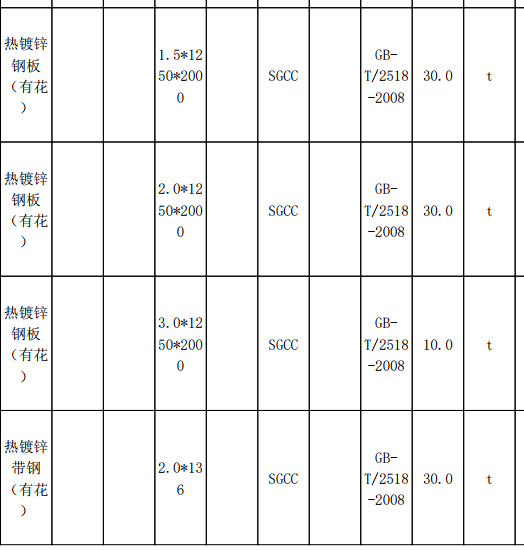 | 项目描述 | 辽宁本溪项目部采购钢材,主要包含热镀锌钢板,有花,宽1250mm,长2000mm,厚度1.5/2.0/3.0mm,需要70吨,热镀锌带钢,有花,需要70吨,热镀锌方管,规格20*40*2.0mm,材质Q235B,需要33吨,具体参考清单报价,联系人:王工。 |