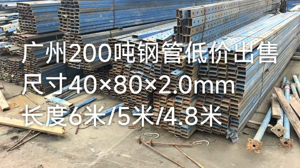 广州200吨钢管,尺寸40×80×2.0,长度是5米6米的,4米8的也有,基本上就是6米的。需要的老板联系18046983666