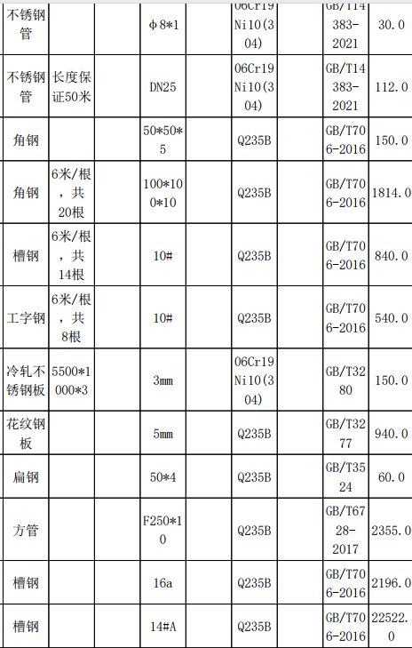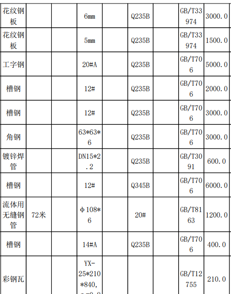 | 项目描述 | 四川攀枝花钢结构工程采购钢材,主要需求包含镀锌钢管,无缝钢管,不锈钢管,H型钢,冷轧板,镀锌钢板,槽钢,角钢,花纹板,彩钢瓦,钛材焊接管等,具体规格及采购数量请参考清单,联系人:张工。 |