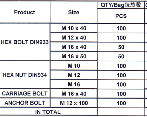 | 项目描述 | 上海地区某单位螺栓采购计划 现需采购一批螺栓,螺母,六角螺栓规格M10/12/16*40,M16*50,滑车螺栓M16 *40,锚栓M12* 100,4.8级,需求量800袋,详情查看下方采购清单,不含税,请有现货的厂家联系报价。 |