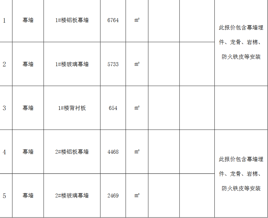 | 项目描述 | 1、福建宁德不锈钢产业园检测检验中心建设项目,主要包含3栋楼,施工单位负责幕墙工程劳务分包。 2、包括铝板,玻璃,背衬板,石材幕墙,含幕墙埋件、龙骨、岩棉、防火铁皮等工作,具体参考清单,联系人:黄工。 |