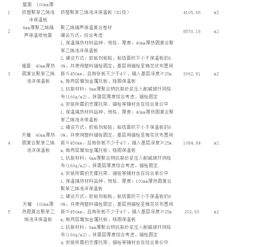 | 项目描述 | 1、四川成都社区综合体建设项目,总建筑面积约2.3万平方,包含社区用房、活动站、资源回收站、农贸市场、卫生站、综合健身馆、地下室等。 2、施工范围包含屋面100mm厚挤塑聚苯乙烯泡沫保温板,6mm厚聚乙烯隔声保温楼地面,墙面、天棚40mm厚热固复合聚苯乙烯泡沫保温板等。 3、具体工艺要求见清单,承包范围为专业分包,含设备、材料、构件、周转料具、临时设施、工具等,建设工期100天。 |